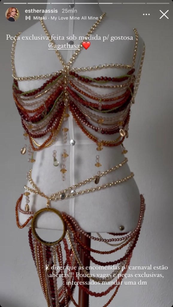 Agatha Sá, namorada do cantor Felipe Ret ferveu as redes sociais com sua nova opção para o próximo carnaval, a bela manauara mostrou em seus storys um dos looks que pretende utilizar nas festas de 2024.